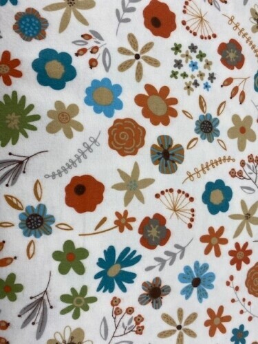 Cozy Outdoors Flannel - Flowers in teal, rust and beige on cream background